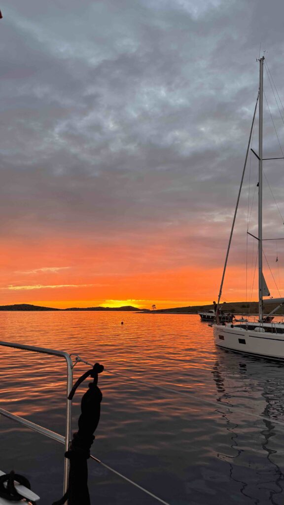 Po cestě jsme měli štěstí na delfíny, užívali si krásné výhledy, západy a východy slunce. Každý si zkusil vedení lodě, navigaci, práci s lany a plachtami, včetně vyvazování lodí. Podívejte se na pár fotografií z teambuildingu!